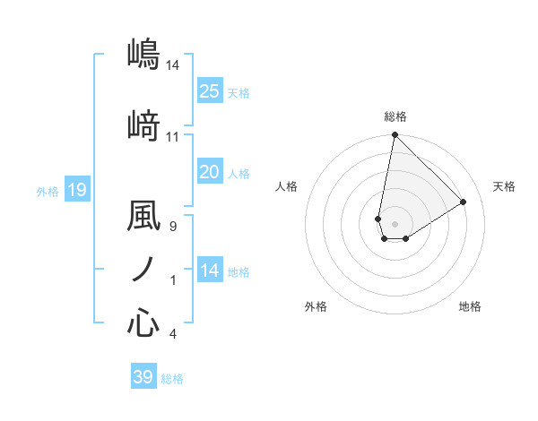 嶋﨑 風ノ心さんの総格は39画の5点!
