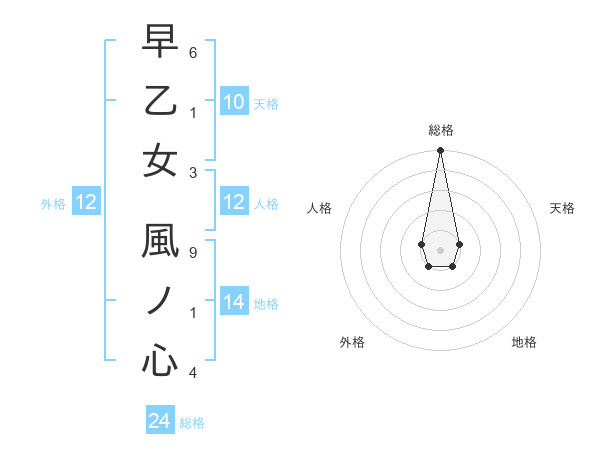 早乙女 風ノ心さんの総格は24画の5点!