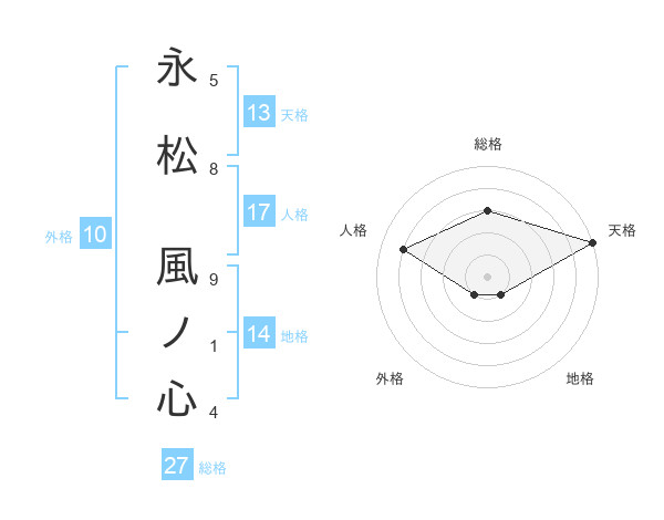 永松 風ノ心さんを姓名の画数から五運を鑑定