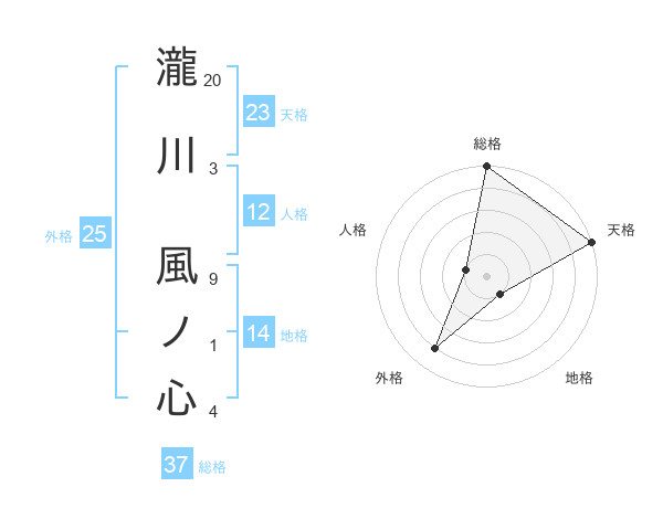 瀧川 風ノ心さんの総格は37画の5点!