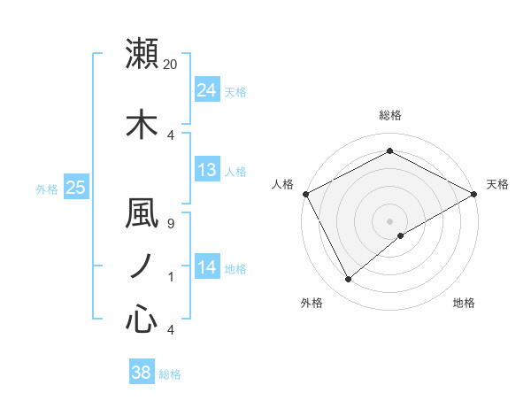 瀬木 風ノ心さんの総格は38画の4点