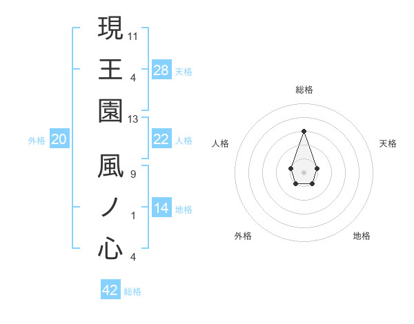現王園 風ノ心さんを姓名の画数から五運を鑑定