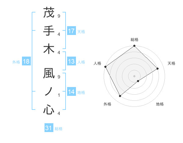 茂手木 風ノ心さんを姓名の画数から五運を鑑定