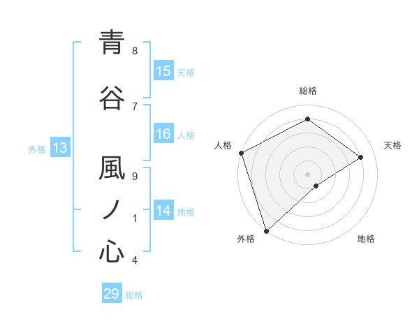 青谷 風ノ心さんを姓名の画数から五運を鑑定