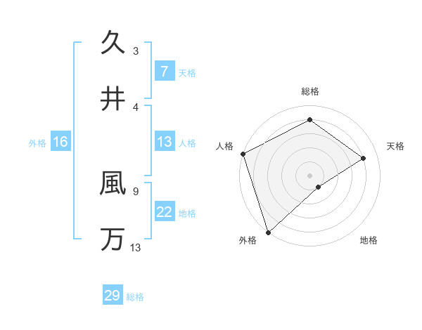 家系が持つ宿命的な運勢を表します。祖先から受け継いだ苗字ですので自分の力が及びません。家柄を象徴します。
