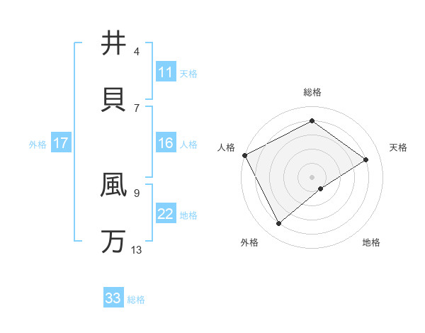 井貝 風万さんの総格は33画の4点!
