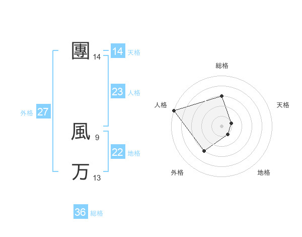 團 風万さんの総格は36画の3点!