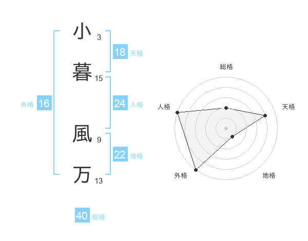 小暮 風万さんの総格は40画の2点!