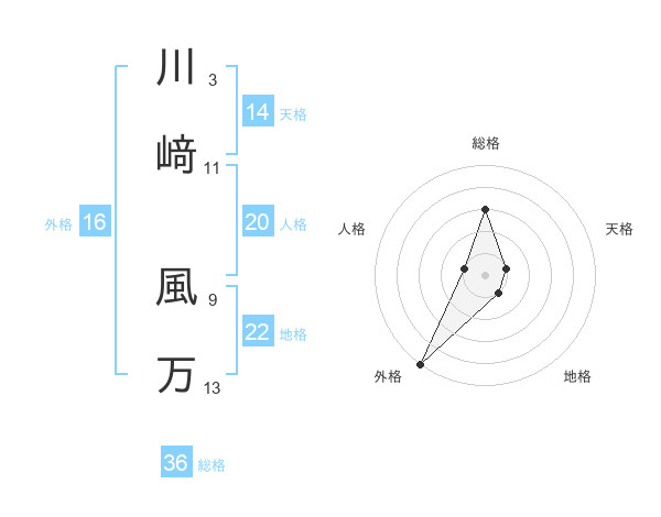 川﨑 風万さんの地格は22画の1点!