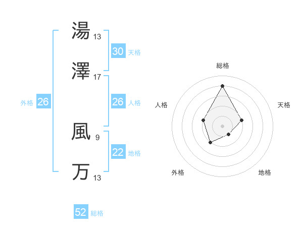 湯澤 風万さんを姓名の画数から五運を鑑定