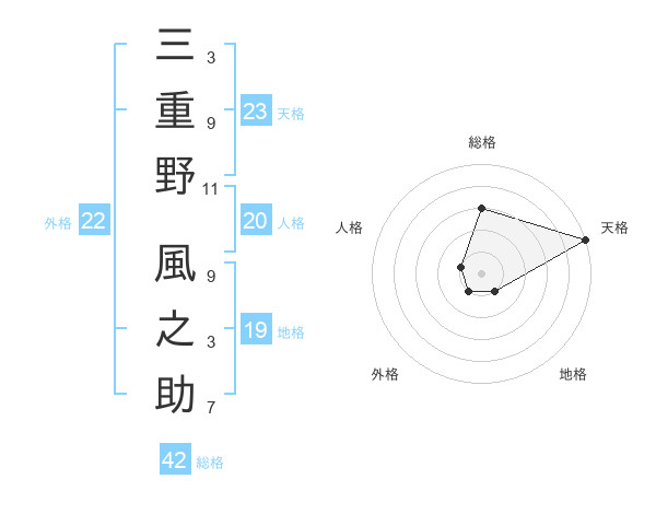 三重野 風之助さんの総格は42画の3点!