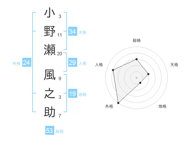 小野瀬 風之助さんを姓名の画数から五運を鑑定