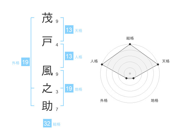 茂戸 風之助さんを姓名の画数から五運を鑑定