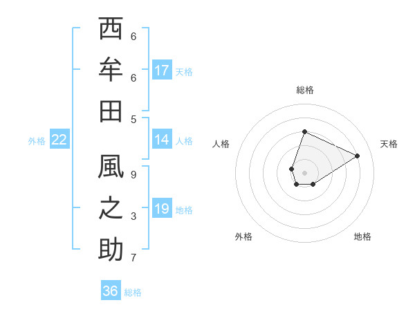 西牟田 風之助さんの天格は17画の4点!