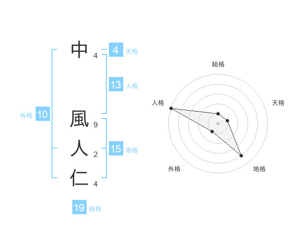 中 風人仁さんの地格は15画の4点!