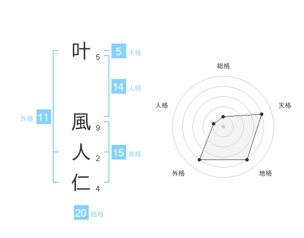 叶 風人仁さんの総格は20画の1点!