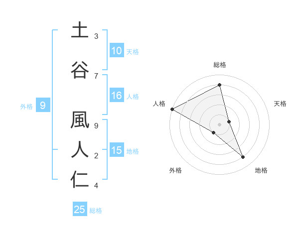 土谷 風人仁さんを姓名の画数から五運を鑑定