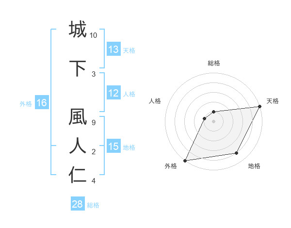 城下 風人仁さんの総格は28画の1点!