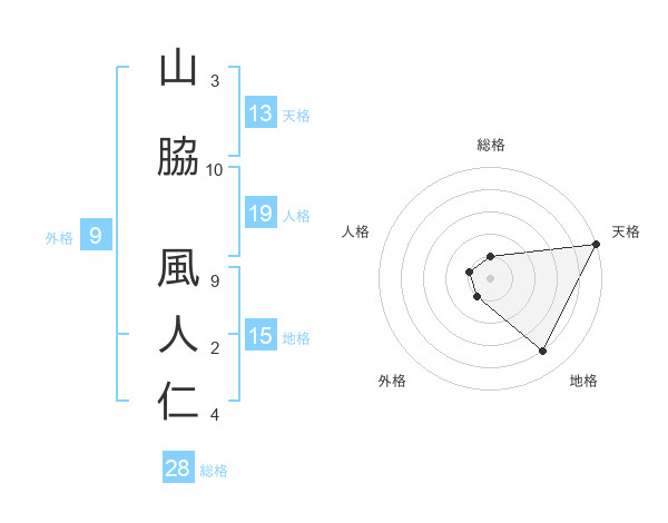 山脇 風人仁さんを姓名の画数から五運を鑑定
