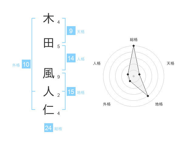 木田 風人仁さんを姓名の画数から五運を鑑定