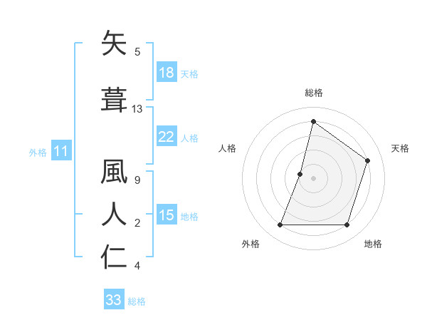 矢葺 風人仁さんを姓名の画数から五運を鑑定