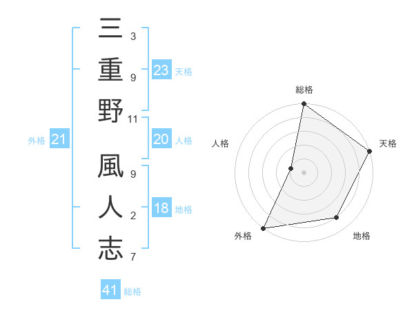 三重野 風人志さんを姓名の画数から五運を鑑定