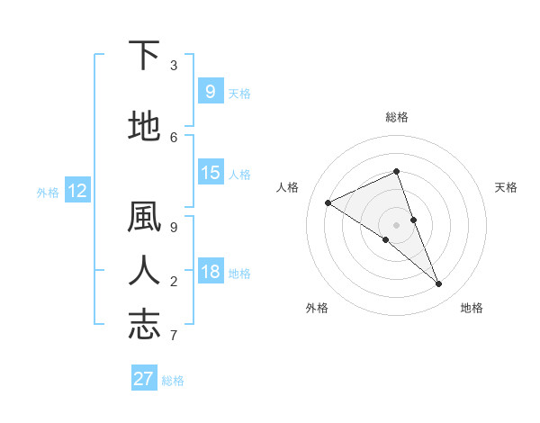 下地 風人志さんの総格は27画の3点!