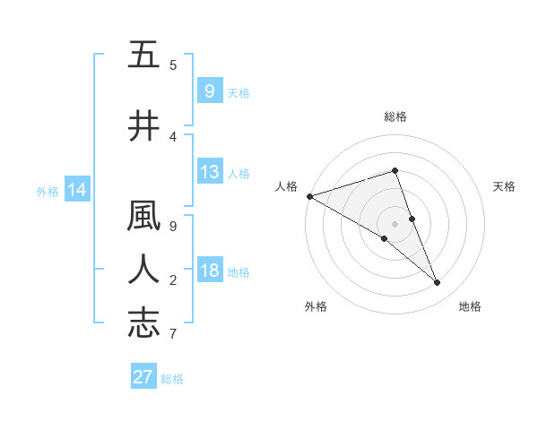 五井 風人志さんの総格は27画の3点!