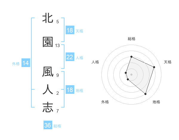 北園 風人志さんの地格は18画の4点!