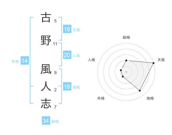 古野 風人志さんを姓名の画数から五運を鑑定