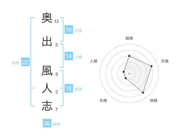 奥出 風人志さんの天格は18画の4点!