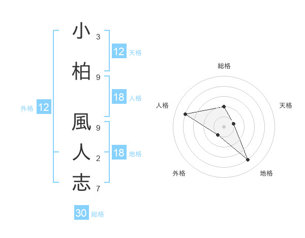 小柏 風人志さんの天格は12画の1点!