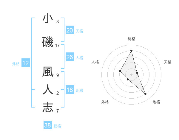 小磯 風人志さんを姓名の画数から五運を鑑定