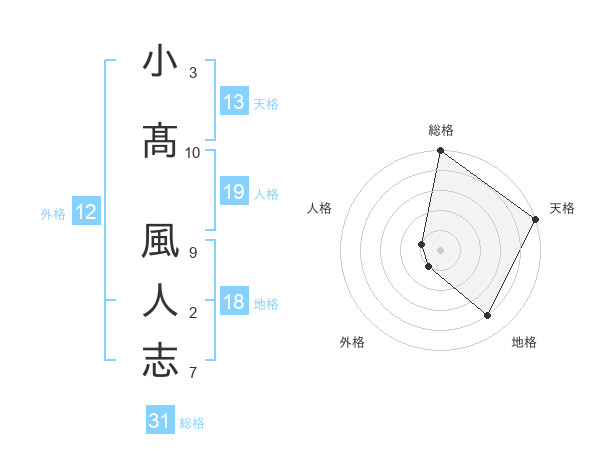 小髙 風人志さんの天格は13画の5点!