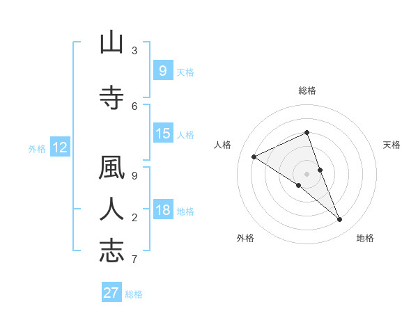 山寺 風人志さんの総格は27画の3点!