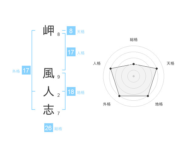 岬 風人志さんの天格は8画の4点!