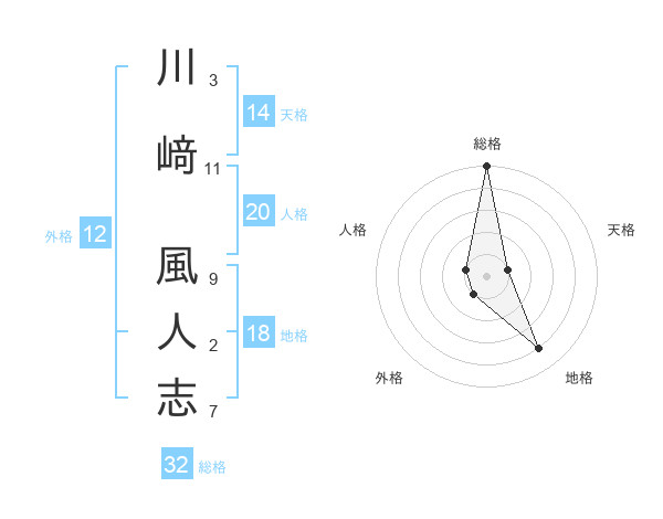 川﨑 風人志さんの総格は32画の5点!