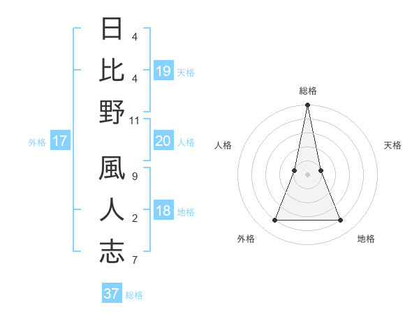 日比野 風人志さんを姓名の画数から五運を鑑定