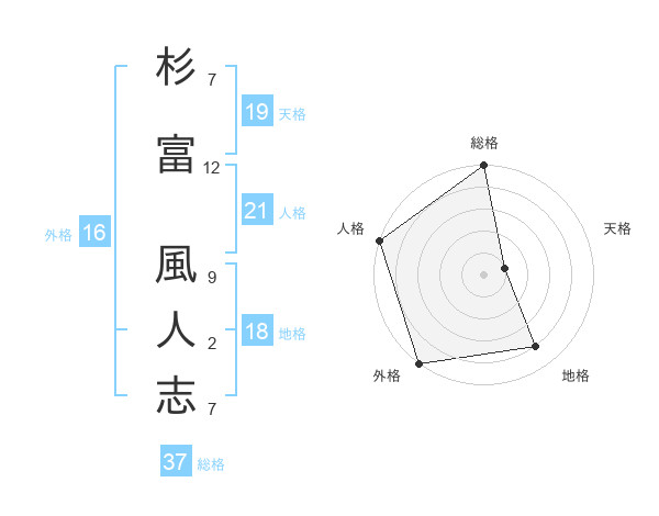 杉富 風人志さんを姓名の画数から五運を鑑定