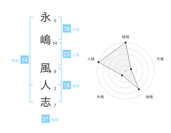 永嶋 風人志さんを姓名の画数から五運を鑑定