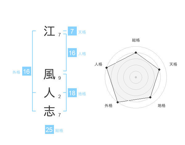 江 風人志さんを姓名の画数から五運を鑑定