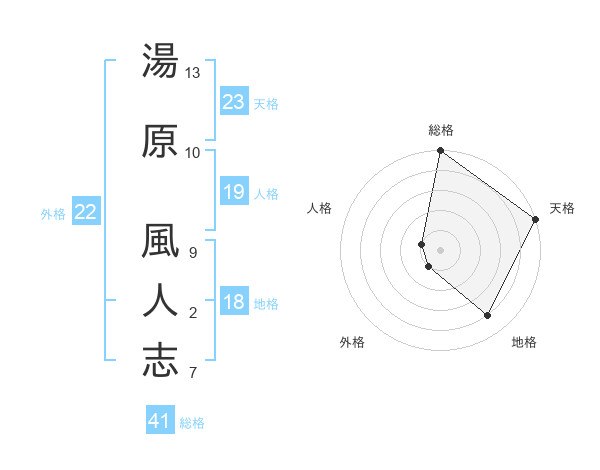 湯原 風人志さんを姓名の画数から五運を鑑定