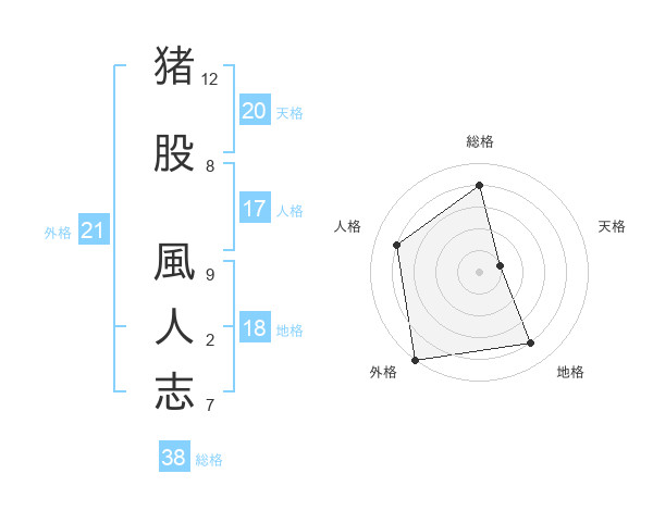 猪股 風人志さんを姓名の画数から五運を鑑定