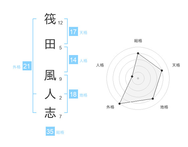 筏田 風人志さんを姓名の画数から五運を鑑定