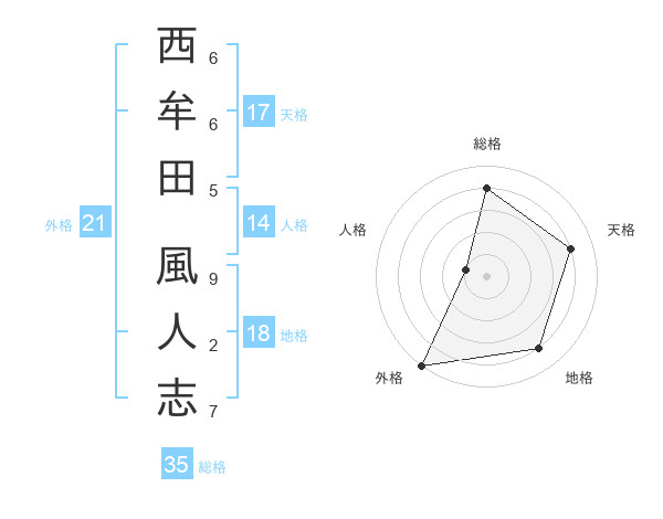 西牟田 風人志さんの総格は35画の4点!