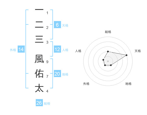 一二三 風佑太さんを姓名の画数から五運を鑑定