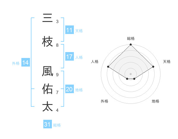 三枝 風佑太さんを姓名の画数から五運を鑑定