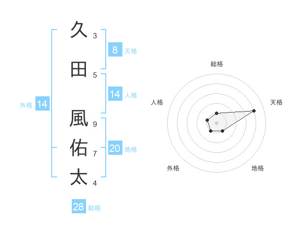 久田 風佑太さんの総格は28画の1点!