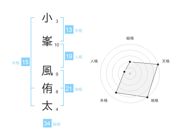 小峯 風侑太さんの天格は13画の5点!