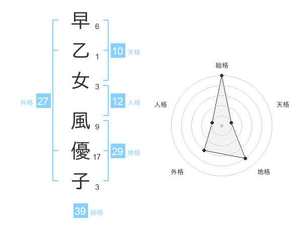早乙女 風優子さんの総格は39画の5点!